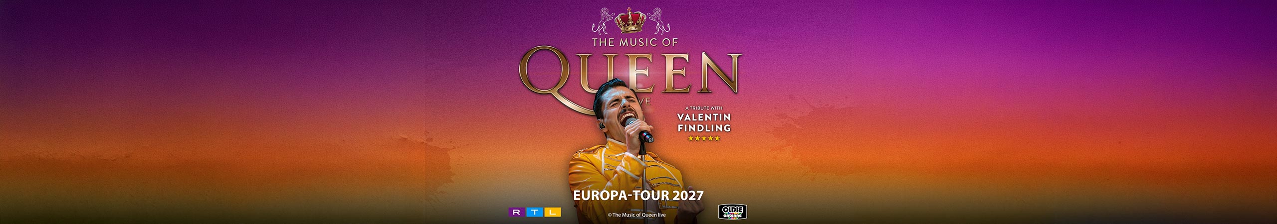 Der charismatische Frontmann Valentin L. Findling und seine erstklassige Liveband präsentieren die Welthits von QUEEN. Er verkörpert Freddie Mercury so atemberaubend und energiegeladen wie kein Zweiter. Er hat die Stimme, den Look und die Moves.